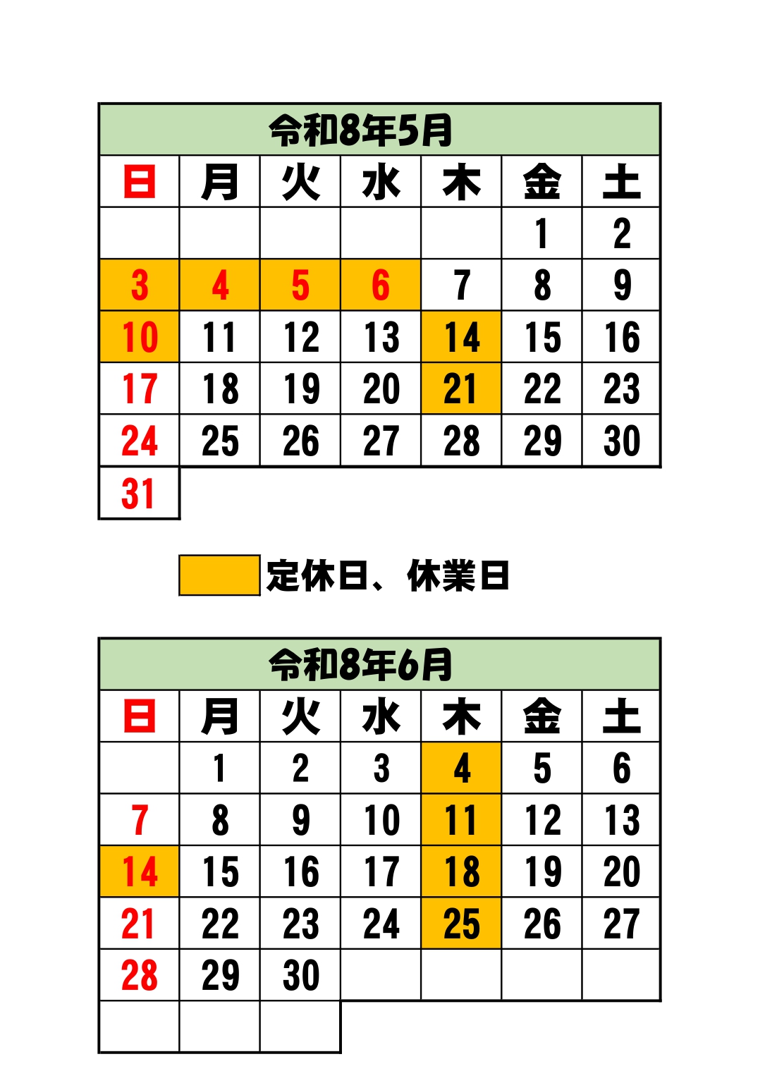 5.6月休業日のお知らせ